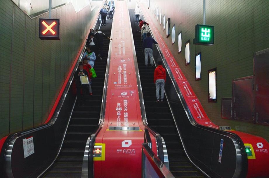 地鐵扶梯廣告 進出必經之地,地鐵的第一眼媒體; 密集連貫發布,廣告信息重復到達; 形式豐富多變,保持品牌的新鮮感。 梯牌廣告位于地鐵入口、出口處階梯兩側,廣告畫面連續,品牌反復沖擊,記憶深刻,細節閱讀,是最佳消費導向媒體。可一式多樣,重復到達;也可不同畫面,形成連環效果;還可以進行特型創意發布。地鐵人群規律性出行特征媒體受眾具穩定性,71%的地鐵受眾乘坐地鐵頻次高達6.9/周。乘坐地鐵人群中,主要出行目的是購物娛樂。 |
