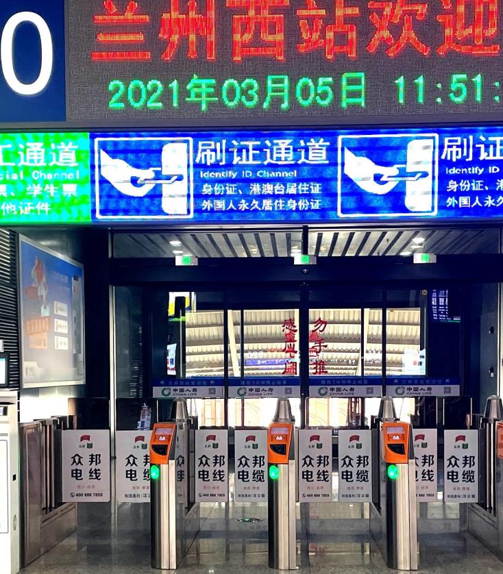 蘭州火車站候車室進(jìn)站閘口感應(yīng)門廣告