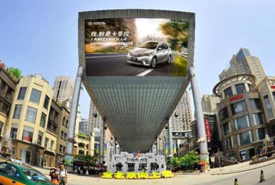 戶外LED大屏的投入成本較低,投放效益也較為顯著。由于戶外LED大屏使用條件較好,對(duì)于環(huán)境干擾的降低和對(duì)建筑安全的保護(hù),以及廣告主選擇戶外廣告方式的自由度更高,目前主流的戶外 LED顯示屏在很多城市當(dāng)中都有應(yīng)用。