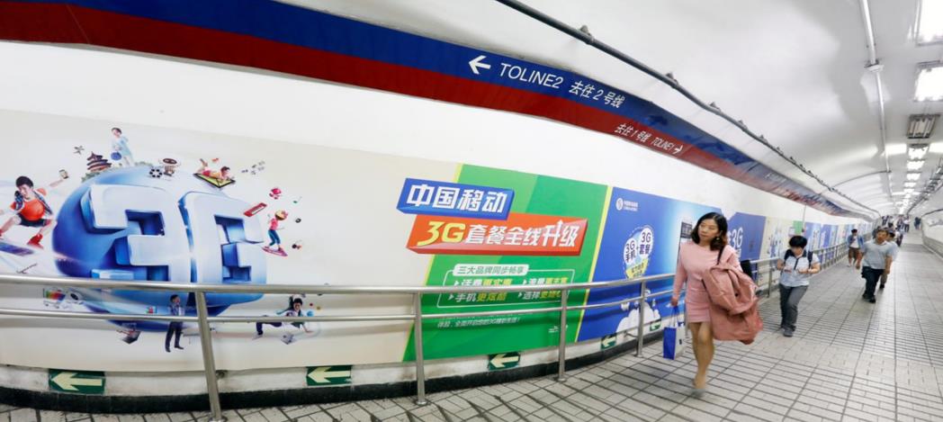 媒體優勢與運用: 復興門站是北京地鐵1號線與2號線的換乘站,客流量極大。復興門換乘通道內的大型墻貼面積大,視覺沖擊力強,撲面而來的視覺盛宴,完全吸引乘客目光。