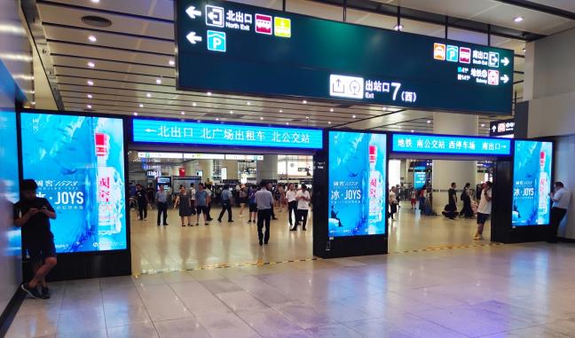北京南站刷屏廣告,北京南站到達(dá)層到達(dá)口LED刷屏機(jī)廣告,萬事成傳媒