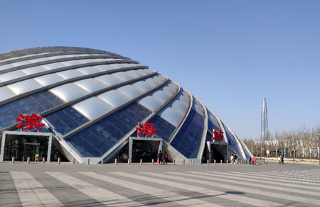 地處濱海新區于家堡金融區北端,坐落于中心商務區核心地帶,唯一深入CBD中心的高鐵站。