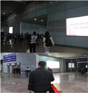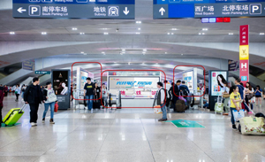 高鐵站名:廣州南站 預估日均人流量:350,000 媒體形式:大型豎式(單面燈箱) 數量:2 位置:三層出發安檢口